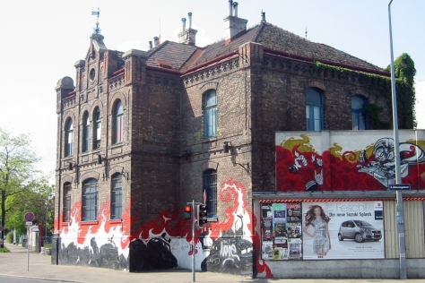 Die aus der früheren Industrie-Architektur stammenden kahlen Ziegelwände sind teilweise mit Graffiti versehen und machen den besonderen Charme der Arena aus. Auch ein weithin sichtbarer Schornstein ist erhalten geblieben.